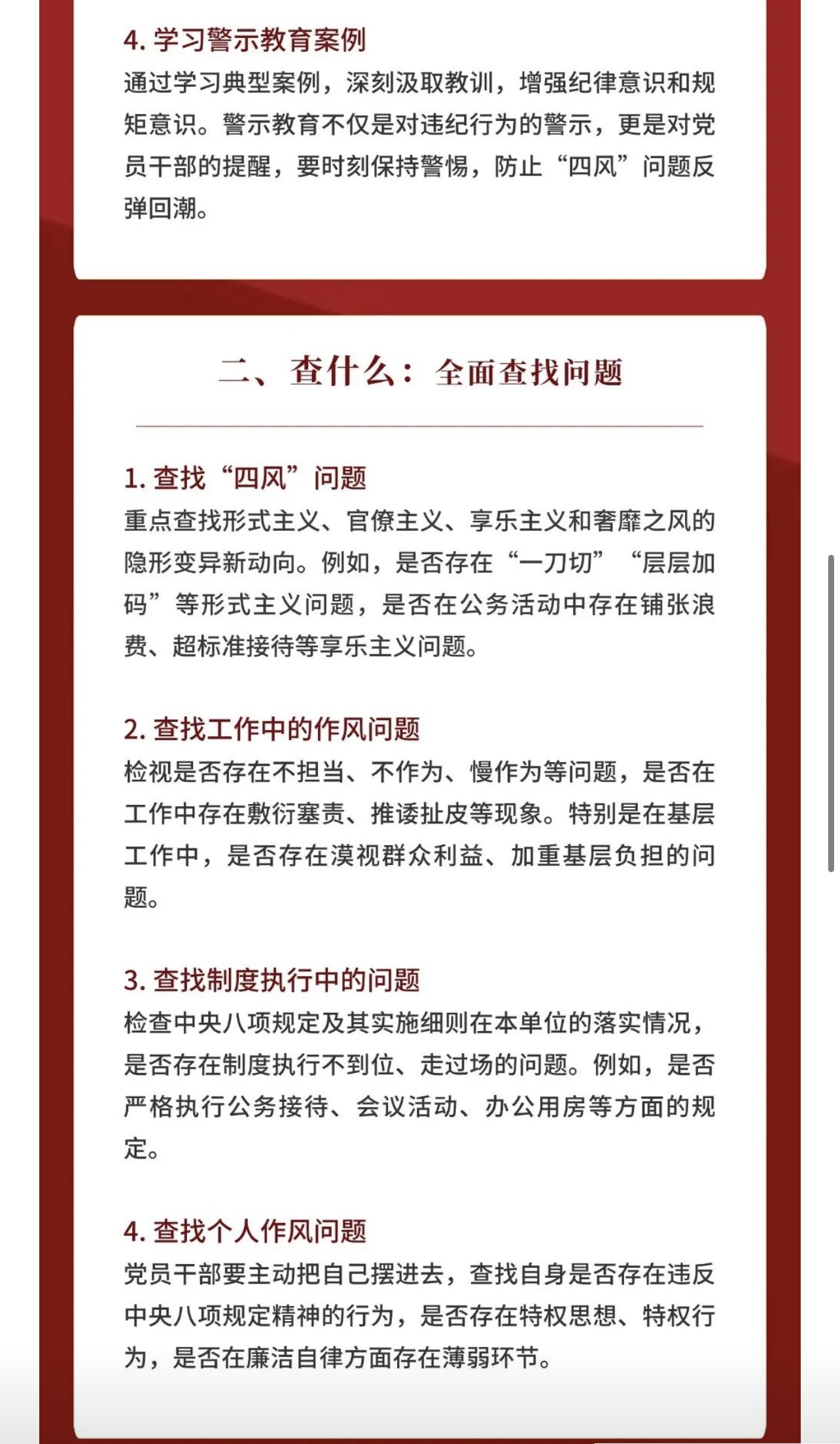 深入贯彻中央八项规定精神学习教育:学什么、查什么、怎么改